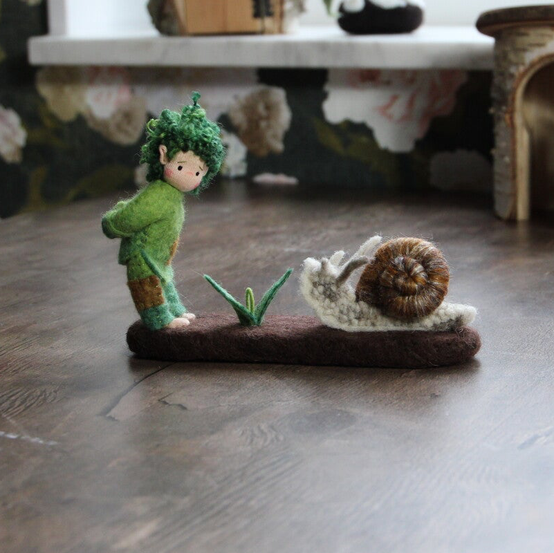 In dit online patroontje leg ik uit hoe we dit mini slakje maken. Het is een patroontje waar je vooral aan de slag gaat met naald vilten. Het is een makkelijk patroon en je kan het slakje ideaal combineren met de mini kindjes.