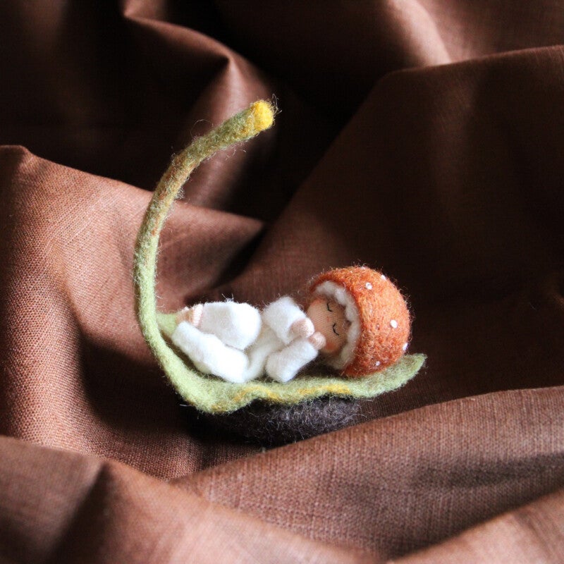 Met dit patroon maak je een paddenstoelbaby met blad.
