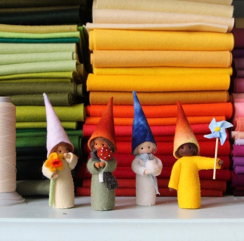 Met dit patroon maak je vier lieve kaboutertjes voor elk seizoen. De kabouters zijn 10cm en tot de puntmuts 14cm.