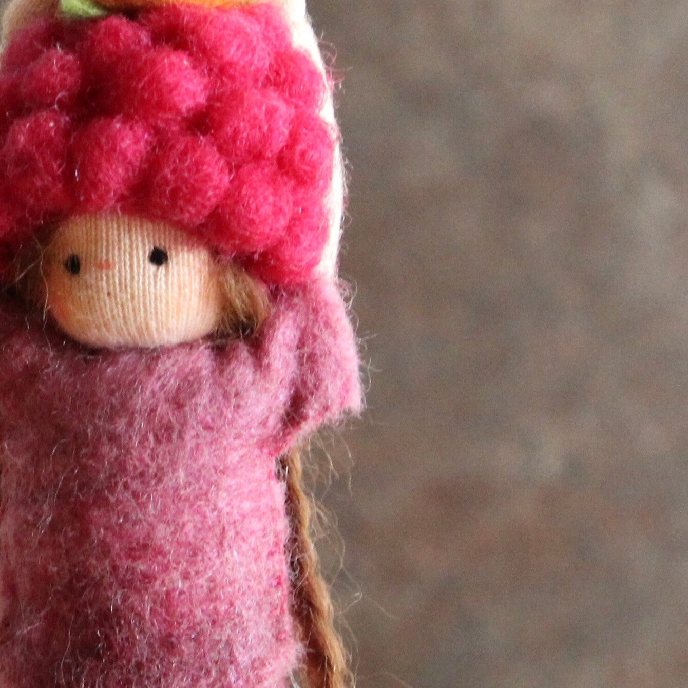 In a magical garden, where the sun always shines softly and the air smells of sweet flowers, a little raspberry child is busy at work. With eyes full of curiosity and hands as small as leaves, it gently pulls a carrot from the earth.